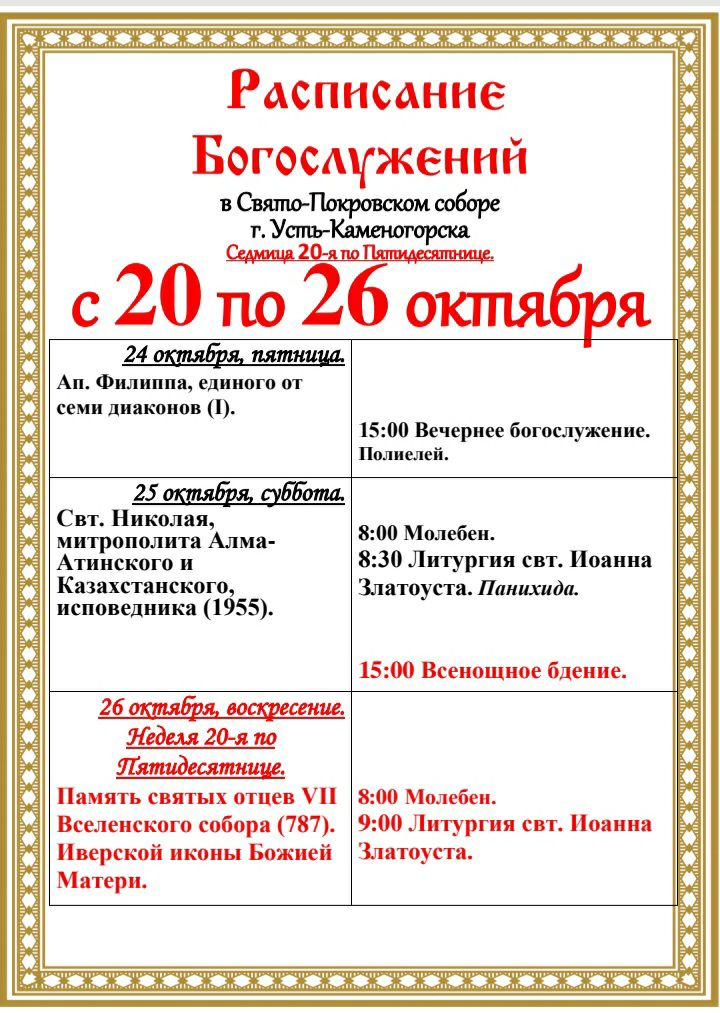 19 октября 2025 года, воскресение. Настоятель Свято-Покровского собора города Усть-Каменогорска…