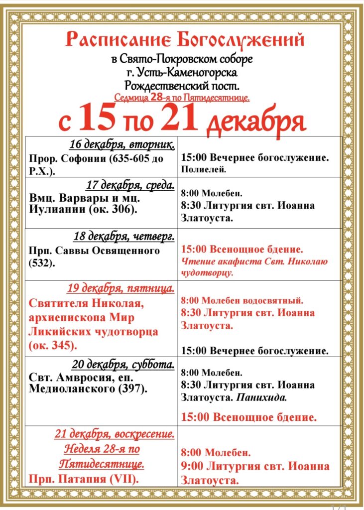 14 декабря 2025 года, воскресение. Настоятель Свято-Покровского собора города Усть-Каменогорска…