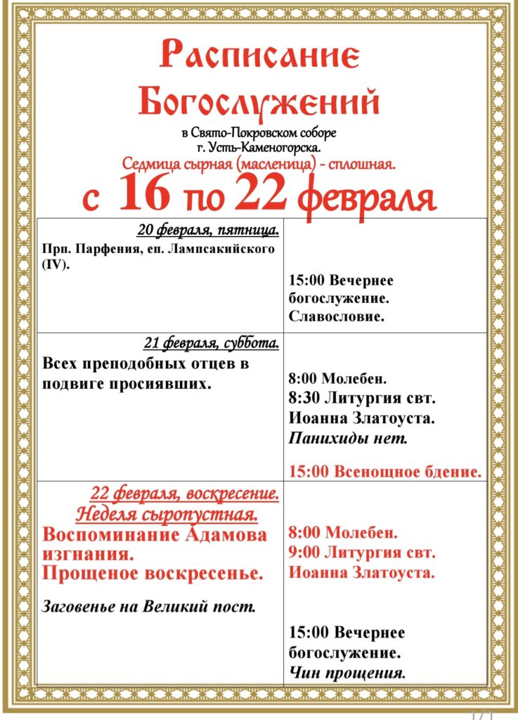15 февраля 2026 года, воскресение. Настоятель Свято-Покровского собора города Усть-Каменогорска…