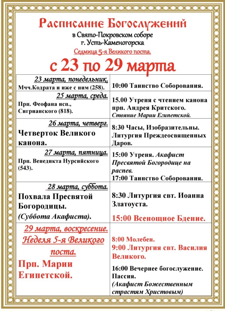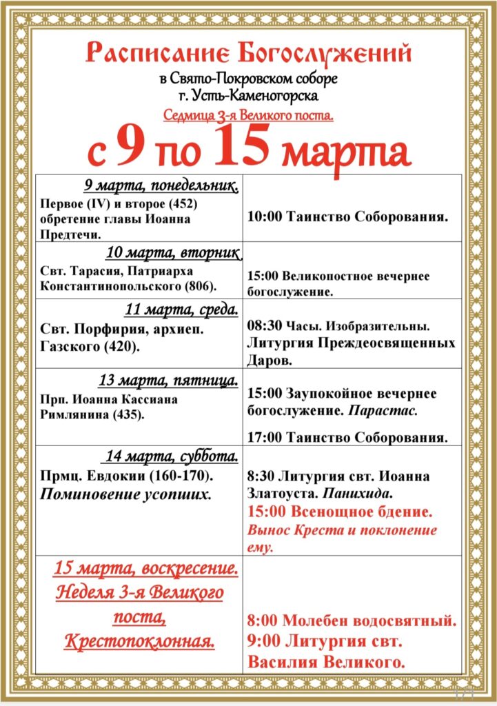 8 марта, воскресение. Настоятель Свято-Покровского собора города Усть-Каменогорска иеромонах Силуан…