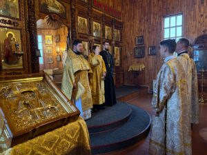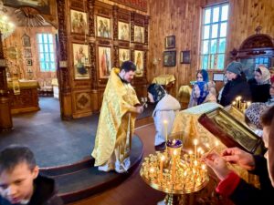 Литургия завершилась славлением Пресвятой Богородице перед старинной иконой «Иверская».