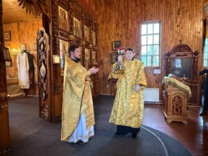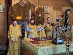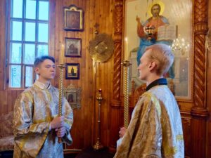 Ему сослужили клирики Свято-Покровского собора: протодиакон Александр Якушев и диакон Кирилл Нарушин.