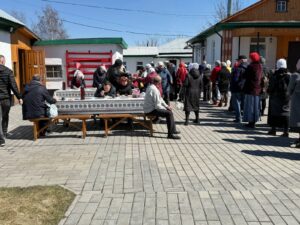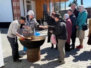 Далее прихожанам прихода было предложено праздничное пасхальное угощение на территории храма.