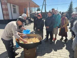 Перед причастием мирян ключарь Свято-Покровского собора иерей Иоанн Толмачёв озвучил послание архиепископа Усть-Каменогорского и Семипалатинского Амфилохия на Пасху 2026 г.