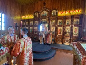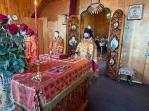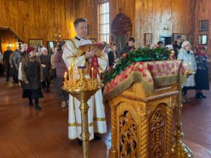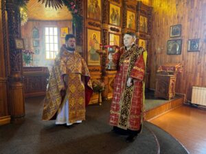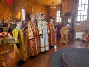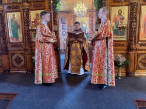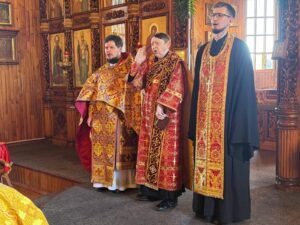 Ему сослужили клирики Свято-Покровского собора: протодиакон Александр Якушев и диакон Кирилл Нарушин.