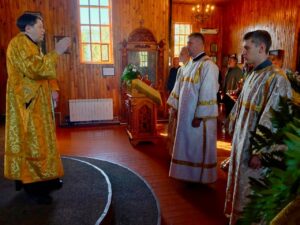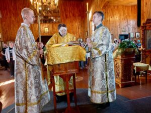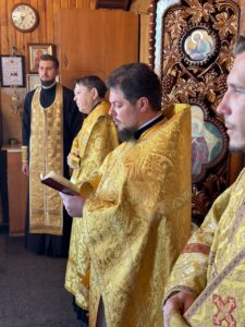 Ему сослужили клирики Свято-Покровского собора: протодиакон Александр Якушев и диакон Кирилл Нарушин.