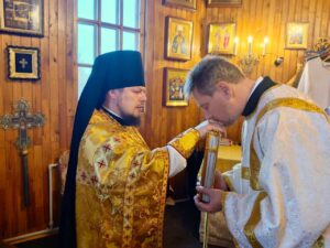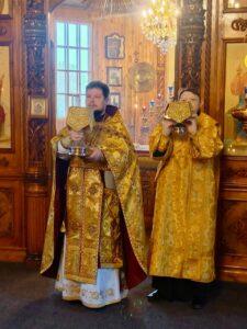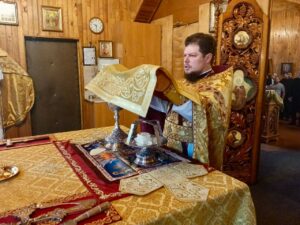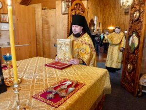 Ему сослужили клирики Свято-Покровского собора: протодиакон Александр Якушев и диакон Кирилл Нарушин.
