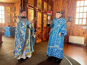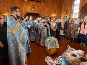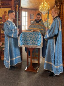 Ему сослужили клирики Свято-Покровского собора: ключарь Свято-Покровского собора иерей Иоанн Толмачёв, протодиакон Александр Якушев и диакон Кирилл Нарушин.