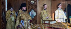 Ему сослужили: ключарь собора иерей Иоанн Толмачёв, протодиакон Александр Якушев и диакон Кирилл Нарушин.