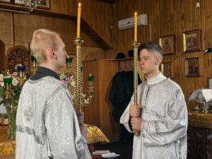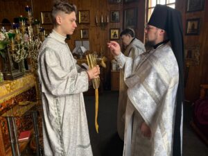 Ему сослужили: ключарь собора иерей Иоанн Толмачёв, протодиакон Александр Якушев и диакон Кирилл Нарушин.
