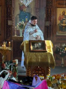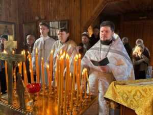 Настоятель собора иеромонах Силуан (Магилёв) возглавил служение Божественной Литургии и панихиды в Свято-Покровском соборе города Усть-Каменогорска.