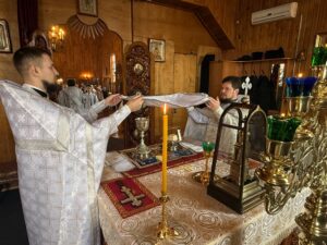 Богослужения возглавил настоятель Свято-Покровского собора иеромонах Силуан (Могилёв).