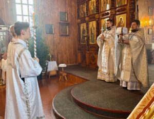 Ему сослужили: ключарь Свято-Покровского собора иерей Иоанн Толмачёв, клирики собора протодиакон Александр Якушев, диакон Кирилл Нарушин.