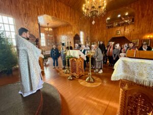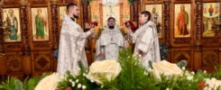 После отпуста Божественной Литургии духовенство и молящиеся воспели у новонаписанной для Покровского собора иконы Рождества Христова тропарь и кондак праздника.
