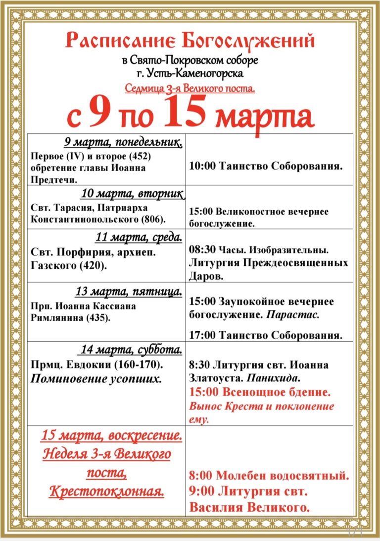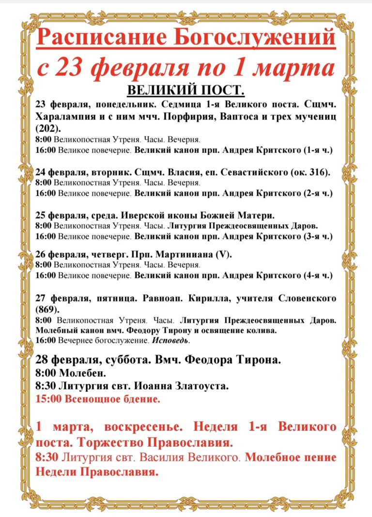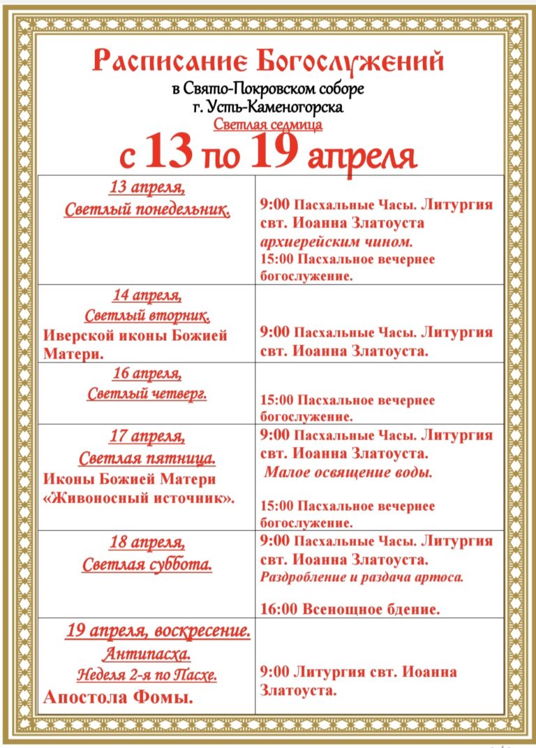 Расписание богослужения