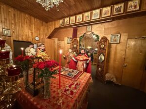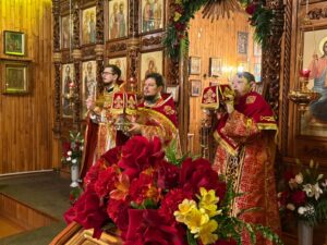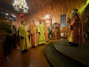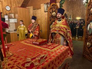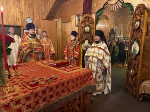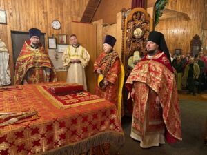Ему сослужили: ключарь собора иерей Иоанн Толмачёв, протодиакон Александр Якушев и диакон Кирилл Нарушин.