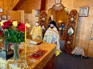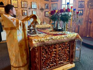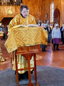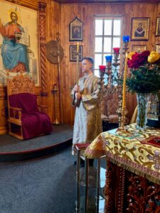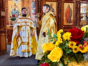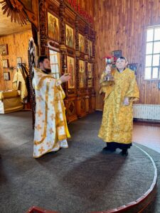 Ему сослужили клирики Свято-Покровского собора: протодиакон Александр Якушев и диакон Кирилл Нарушин.