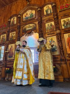 В праздничный день настоятель Свято-Покровского собора города Усть-Каменогорска иеромонах Силуан (Магилёв) совершил Божественную Литургию святителя Иоанна Златоуста.
